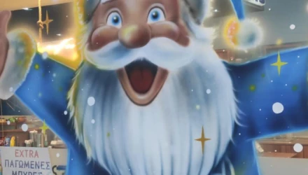 Στα χρώματα του Ηρακλή ντύθηκε βενζινάδικο στη Θεσσαλονίκη, προσαρμοσμένο στις ανάγκες των Χριστουγέννων και με τον γαλάζιο Άγιο Βασίλη να αποτελεί κεντρική φιγούρα.