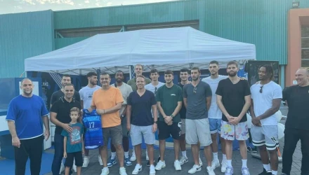 Στο stand του Ηρακλή στην 87η ΔΕΘ βρέθηκε σήμερα η μπασκετική ομάδα μαζί με τον χορηγό, Τάσο Δίγκα, στον οποίο δωρίστηκε μια αναμνηστική φανέλα.