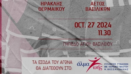 Με αφορμή τον μήνα Οκτώβριο, μήνα πρόληψης και ενημέρωσης για τον καρκίνο του μαστού, όλα τα έσοδα του αγώνα της ομάδας του Ηρακλή Θερμαικού απέναντι στον Αετό Βασιλικών για την 9η αγωνιστική της Eurolamp-Α1 Κατηγορίας της ΕΠΣΜ θα διατεθούν στην ενίσχυση των δράσεων του Πανελλήνιου συλλόγου γυναικών με καρκίνο του μαστού «Αλμα ζωής» Ν. Θεσσαλονίκης.