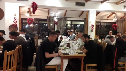 Έτσι λοιπόν, το βράδυ της Δευτέρας, σε μία άκρως “κυανόλευκη” βραδιά σε γνωστό εστιατόριο στην περιοχή του Χορτιάτη, φίλοι της ομάδας έκαναν το τραπέζι σε ποδοσφαιριστές, προπονητικό επιτελείο, εργαζόμενους στην ΠΑΕ και φυσικά στα μέλη της Διοίκησης, την οποία εκπροσώπησε ο Αντιπρόεδρος Χαράλαμπος Ηλιάδης.Τα μέγιστα συνέβαλε και ο ιδιοκτήτης του εστιατορίου, γνωστός για τα “κυανόλευκα” αισθήματά του, ο οποίος φρόντισε και την παραμικρή λεπτομέρεια, ώστε όλη η αποστολή της ομάδας μας να περάσει μία αξέχαστη βραδιά, με απολαυστικές λιχουδιές και εδέσματα.