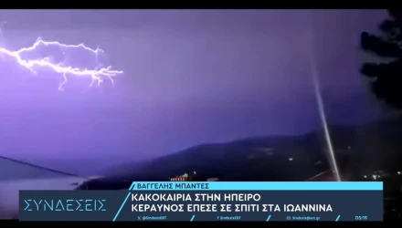 Στα Ιωάννινα, κεραυνός χτύπησε τριώροφη οικοδομή στους Αμπελόκηπους, σπάζοντας κεραμίδια και ανοίγοντας τρύπα στη σκεπή. Πυροσβεστική και Αστυνομία έσπευσαν στο σημείο, χωρίς να αναφερθούν τραυματισμοί ή σοβαρές δομικές ζημιές.
