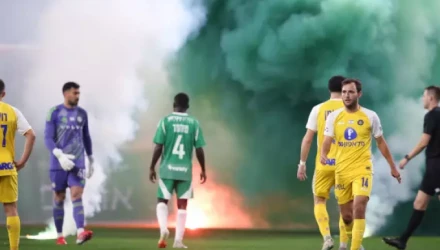 Οι οπαδοί των γηπεδούχων άρχισαν να εκτοξεύουν μαζικά φωτοβολίδες, με μία εξ αυτών να βρίσκει τον τερματοφύλακα της Μακάμπι την ώρα που η αναμέτρηση ήταν σε εξέλιξη.