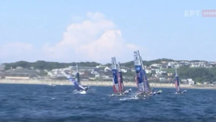 Στο νερό βρέθηκαν οι δύο κυβερνήτες του σκάφους της Νέας Ζηλανδίας κατά την διάρκεια των σημερινών (1/8) αγώνων ιστιοπλοΐας.