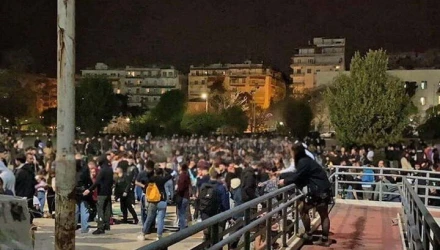 Την ώρα που όλοι στο κορονοπάρτι του ΑΠΘ χόρευαν στους ρυθμούς της μουσικής, ομάδα νεαρών ανέβηκαν σε μία μπουλντόζα που βρισκόταν στο σημείο και άναψαν την μηχανή.