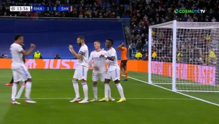 Η «Βασίλισσα» ευτύχησε να πάρει κεφάλι στο σκορ με τον Μπενζεμά στο 14΄. Τα λάθη των φιλοξενούμενων εκμεταλλεύτηκαν οι «μερένχες», ο Βινίσιους έδωσε στον Γάλλο και αυτός με πλασέ σε κενή εστία έκανε το 1-0. Ένα γκολ ιστορικό για τη Ρεάλ, καθώς έφτασε τα 1.000 τέρματα στην κορυφαία διασυλλογική διοργάνωση.