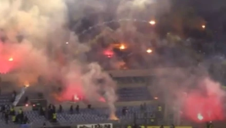Οπαδοί των δύο ομάδων συνεπλάκησαν στις 9.30 (!) το πρωί πέριξ του «Ολίμπικο» χρησιμοποιώντας φωτοβολίδες, καπνογόνα, μπαστούνια του μπέιζμπολ.