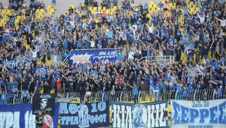Με χιλιάδες φίλους των «κυανόλευκων» να πραγματοποιούν κατάληψη στο ΔΑΚ. Το ίδιο θερμή αλλά σαφώς μεγαλύτερη σε αριθμό ήταν και η χθεσινή παρουσία του κόσμου, με 7.000 τουλάχιστον Ηρακληδείς να δημιουργούν εξαιρετική ατμόσφαιρα στο Στάδιο. Από το ξεκίνημα «μεταδόθηκε» η φρενίτιδα που επικρατούσε στο «πέταλο» της Θύρας 10, με τους υπόλοιπους να ακολουθούν το… ρυθμό. Η έκρηξη επήλθε στο τέρμα του Περόνε, με το Καυτανζόγλειο να «φωτίζεται» από τα καπνογόνα και τους πυρσούς που άναψαν.