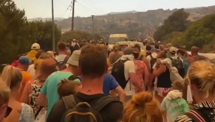 «Οι πυρκαγιές μαίνονταν το μεγαλύτερο μέρος της περασμένης εβδομάδας αλλά περιορίστηκαν στο ορεινό εσωτερικό του νησιού μέχρι που ισχυροί άνεμοι, υψηλές θερμοκρασίες και ξηρές συνθήκες παρέσυραν τις φλόγες προς την ακτή στην κεντροανατολική πλευρά της Ρόδου. Αξιωματούχοι δήλωσαν ότι η επιχείρηση παρεμποδίστηκε από τις πυρκαγιές που διέκοψαν την οδική πρόσβαση. “Στόχος είναι η προστασία της ανθρώπινης ζωής”, είπε ένας εκπρόσωπος. Οι άνθρωποι μεταφέρονταν σε γυμναστήρια, σχολεία και συνεδριακά κέντρα του νησιού, ενώ οι πυροσβέστες έδιναν μάχη με τις φλόγες. Τρία επιβατηγά πλοία έδεσαν στο λιμάνι της Ρόδου για να φιλοξενήσουν τους διασωθέντες».