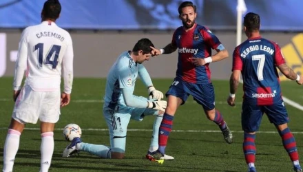 Με δέκα παίκτες από το όγδοο λεπτό λόγω αποβολής του Έντερ Μιλιτάο, η Ρεάλ Μαδρίτης υπέστη οδυνηρή εντός έδρας ήττα από τη Λεβάντε με 2-1 και έμεινε στο -7 από την πρωτοπόρο Ατλέτικο που έχει και δυο ματς λιγότερα.