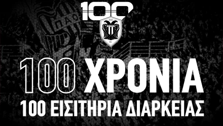 «Η ΚΑΕ ΠΑΟΚ, στο πλαίσιο του εορτασμού της ιστορικής επετείου των 100 ετών από την ίδρυση του Συλλόγου, ανακοινώνει τη διοργάνωση διαγωνισμού με τίτλο «100 Χρόνια ΠΑΟΚ – 100 Εισιτήρια Διαρκείας» και συγκεκριμένα σαράντα (40) εισιτήρια διαρκείας θα διατεθούν σε φιλάθλους που ανήκουν σε ευάλωτες κοινωνικές ομάδες (ανέργους και πολύτεκνους) και τα υπόλοιπα εξήντα (60) εισιτήρια θα διατεθούν στο ευρύ φίλαθλο κοινό.