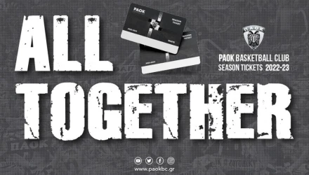 Διαβάστε ΕΔΩ όλες τις λεπτομέρειες του προγράμματος εισιτηρίων διαρκείας για την αγωνιστική περίοδο 2022-23 και κλείστε ΤΩΡΑ θέση στο PAOK Sports Arena, για να είμαστε ΟΛΟΙ ΜΑΖΙ σε μία χρονιά γεμάτη συγκινήσεις και μεγάλα παιχνίδια σε Ελλάδα και Ευρώπη».