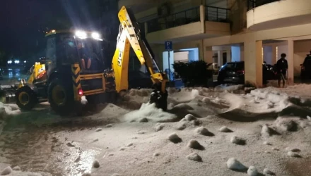 Τα συνεργεία της ΔΕΥΑ και της τεχνικής υπηρεσίας δούλευαν καθ' όλη τη διάρκεια της νύχτας προκειμένου να αντιμετωπίσουν τα ακραία καιρικά φαινόμενα, που έπληξαν την πόλη της Δράμας.