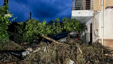 Η κακοκαιρία Byron, η οποία σαρώνει τμήματα της Ελλάδας, άφησε το στίγμα της και στη Λακωνία, όπως για παράδειγμα στο Γύθειο.