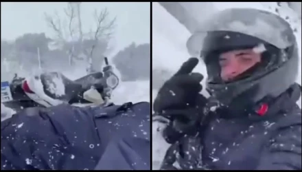 Ο διανομέας Παναγιώτης Κριεμάδι που πήγαινε μια παραγγελία παρά τις έντονες χιονοπτώσεις, με αποτέλεσμα να πέσει 5 φορές με το μηχανάκι του, την τελευταία του πτώση την ανέβασε στο Tik Tok, θέλοντας να στείλει ένα μήνυμα σε όσους παραγγέλνουν παρά τις αντίξοες καιρικές συνθήκες που επικρατούν στη χώρα τις τελευταίες ημέρες.