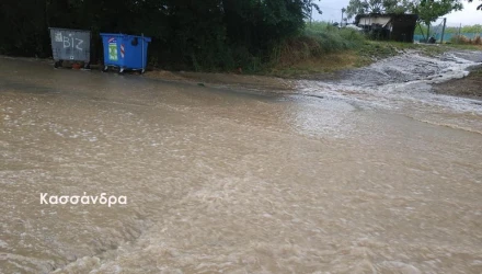 Σε περιοχές της Κασσάνδρας βρέχει ασταμάτητα και οι δρόμοι σε πολλά σημεία είναι πλημμυρισμένοι. Στην παραλία της Φούρκας ο δρόμος μπροστά από ξενοδοχεία είναι απροσπέλαστος από τα νερά της βροχής.