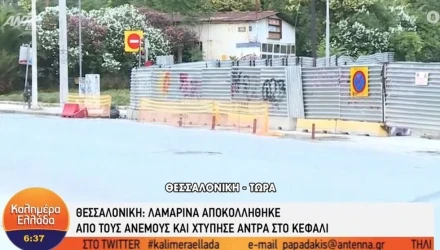 Λαμαρίνα αποκολλήθηκε και τραυμάτισε περαστικό στο κεφάλι