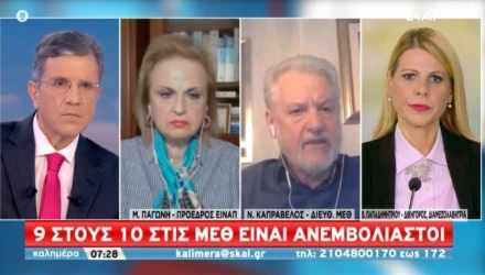 Για μια ακόμα φορά έκανε έκκληση στον κόσμο να εμβολιαστεί, σημειώνοντας ότι στη μονάδα εντατικής θεραπείας, στην οποία είναι διευθυντής και διαθέτει 12 κλίνες, είναι όλοι ανεμβολίαστοι. «Στο τρίμηνο νοσήλευσα 52 ασθενείς. Οι 3 ήταν πλήρως εμβολιασμένοι, δηλαδή μόλις 6%. Αυτή τη στιγμή το νοσοκομείο Παπανικολάου έχει 100% πληρότητα στις ΜΕΘ Covid», τόνισε.