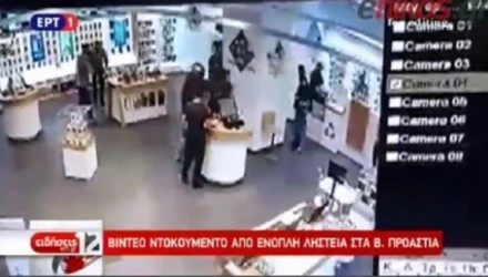 Σύμφωνα με βίντεο - ντοκουμέντο που πρόβαλε η ΕΡΤ, οι ληστές εισέβαλαν στο κατάστημα κρατώντας όπλα και ακινητοποίησαν τους υπαλλήλους και τους πελάτες, αναγκάζοντάς τους να πέσουν στα γόνατα.
