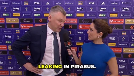 Sarunas Jasikevicius takes a subtle jab at SEF issues: 'No, it's only leaking in Piraeus. In Istanbul, it's not leaking.' 😄