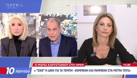 Καλεσμένη στην εκπομπή του OPEN «10 Παντού» ήταν η Μαρία Καρυστιανού, η οποία μίλησε -μεταξύ άλλων- για το υπό διαμόρφωση κίνημα, το οποίο έχει βλέψεις συμμετοχής στις επόμενες βουλευτικές εκλογές. Η κα. Καρυστιανού απάντησε σε αρκετές ερωτήσεις, δίνοντας το στίγμα των σκέψεών της για θέματα που απασχολούν την ελληνική κοινωνία.