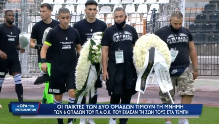 Κατάθεση στεφάνων από τους παίκτες ΠΑΟΚ - ΟΦΗ για τα αδικοχαμένα αετόπουλα