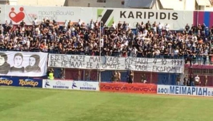 Πριν ξεκινήσει ο αγώνας, οι παίκτες των δύο ομάδων κατέθεσαν στεφάνι μπροστά στο πανό των οπαδών του ΠΑΟΚ για τα αδικοχαμένα αετόπουλα.