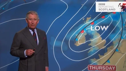 Στα παπούτσια ενός μετεωρολόγου θέλησε να μπει ο Κάρολος, στις 10 Μαΐου 2012, σε επίσκεψη που είχε κάνει πριν 11 χρόνια στο BBC της Σκωτίας. Ο τότε πρίγκιπας της Ουαλίας με τη σύζυγό του, νυν βασίλισσα Καμίλα, είχαν επισκεφθεί το κανάλι, για να γιορτάσουν τα 60 χρόνια του καναλιού.