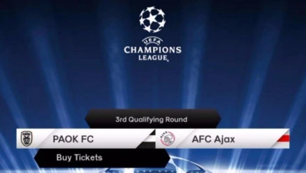 «Η ΠΑΕ ΠΑΟΚ ανακοινώνει ότι τη Δευτέρα (01.08) θα ξεκινήσει η πώληση των εισιτηρίων του αγώνα ΠΑΟΚ-Άγιαξ για τον 3o Προκριματικό γύρο του UEFA Champions League, που θα διεξαχθεί την Τετάρτη (03.08 21:30).