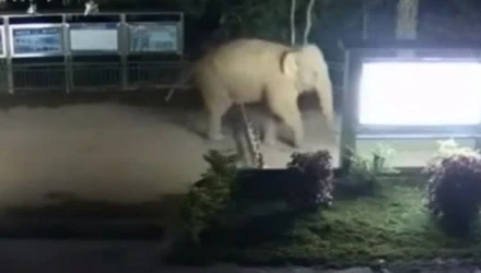 Το στιγμιότυπο καταγράφηκε από τις κάμερες ασφαλείας και δείχνει τον ελέφαντα να περνά από τα διαχωριστικά κιγκλιδώματα με άνεση.