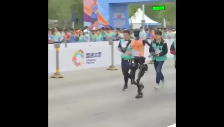 Το πρώτο ρομπότ που πέρασε τη γραμμή τερματισμού, το Tiangong Ultra - που δημιουργήθηκε από το Κέντρο Καινοτομίας Ανθρωποειδών Ρομπότ του Πεκίνου - ολοκλήρωσε τη διαδρομή σε δύο ώρες και 40 λεπτά, σχεδόν δύο ώρες λιγότερο από το παγκόσμιο ρεκόρ ανθρώπου 56:42, που κατέχει ο δρομέας από την Ουγκάντα Jacob Kiplimo.