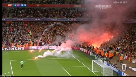 Μετά το δεύτερο γκολ του Ντάνι Γουέλμπεκ, οι οπαδοί της «Τσιμ Μπομ» άρχισαν να πετούν πυρσούς στον αγωνιστικό χώρο, με αποτέλεσμα να διακοπεί προσωρινά το παιχνίδι.