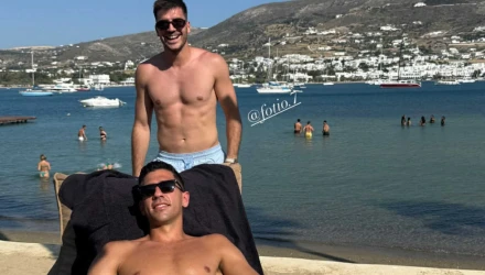Κοινές διακοπές στην Πάρο για τον Φώτη Ιωαννίδη και τον Τάσο Μπακασέτα, με τους δύο ποδοσφαιριστές να εκμεταλλεύονται το κενό διάστημα μεταξύ της Εθνικής Ομάδας και του Παναθηναϊκού για να πάρουν ''ανάσες''.