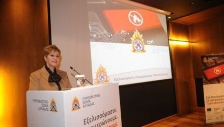H Κόλλια-Τσαρουχά στην παρουσίαση της ψηφιακής ειδοποίησης πυρκαγιάς