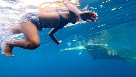 Κολυμβήτρια τα... είδε όλα! Σε άμεση επαφή με σαγόνια φαλαινοκαρχαρία