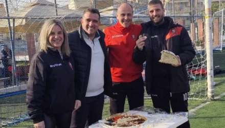 Ο Αντιδήμαρχος Αθλητισμού, Γιάννης Καρτάλης, έστειλε τις ευχές του σε γονείς και ποδοσφαιριστές και στη συνέχεια έκοψε την πρωτοχρονιάτικη πίτα, με τους τυχερούς παίκτες των τμημάτων να κερδίζουν από μία ποδοσφαιρική μπάλα. Το φλουρί της πίτας έπεσε στο τμήμα Κ16, ενώ ο προπονητής Δημήτρης Κεφαλάς κέρδισε ως δώρο ένα ρολόι.