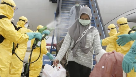 Ταυτόχρονα, αρκετές αεροπορικές εταιρείες ανά τον κόσμο ψεκάζουν τους επιβάτες κατά την έξοδό τους από τα αεροπλάνα. «Θέλουμε με αυτό τον τρόπο να χτυπήσουμε τον ιό» αναφέρουν μεταξύ άλλων. Η φωτογραφία που δείχνει το εν λόγω μέτρο εφαρμόζεται στην Ινδονησία και σε άλλες χώρες της Ασίας.