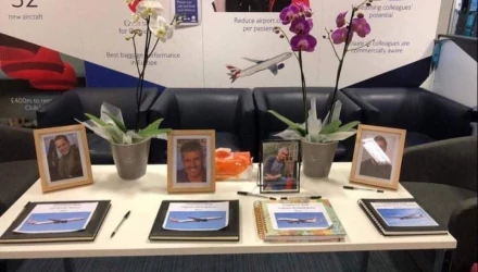 Στα Social Media έχουν αναρτηθεί μια φωτογραφία με τέσσερα βιβλία συλλυπητηρίων δίπλα σε φωτογραφίες τεσσάρων ανδρών σε ένα σαλόνι με θέμα την British Airways.