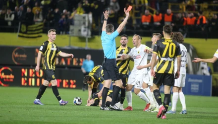 Στο 57ο λεπτό έχουμε την κόκκινη στον Μήτογλου μετά από μαρκάρισμα πάνω στον Μορόν. Θεωρώ αδιανόητη αυτή την κόκκινη κάρτα κυρίως μετά από ανασκόπηση της φάσης. Έχουμε ένα ριψοκίνδυνο μαρκάρισμα και όχι ένα σοβαρό επικίνδυνο μαρκάρισμα.