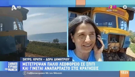 Όπως αποκάλυψε, μιλώντας στην εκπομπή «Σαββατοκύριακο με τον Μάνεση», η ιδιοκτήτρια Δώρα Δημητρίου αποφάσισαν να μετατρέψουν το παλιό λεωφορείο, που βρίσκεται στην άγρια και απομονωμένη ακτή των Ανωγείων Αγίου Νικολάου, σε κατοικία εισηγμένη σε δημοφιλή πλατφόρμα βραχυχρόνιας μίσθωσης.
