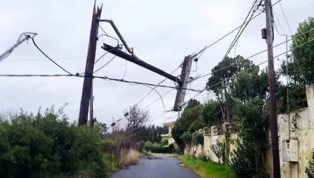 Συγκεκριμένα, στην Κρυοπηγή, ένας στύλος της ΔΕΗ κόπηκε στα δύο λόγω των ισχυρών ανέμων που έπνεαν στην περιοχή καθ'όλη τη διάρκεια της ημέρας.