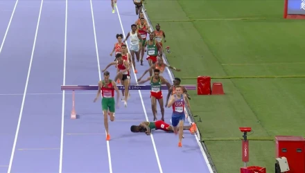 O 23χρονος Αιθίοπας αθλητής και κάτοχος του παγκοσμίου ρεκόρ στα 3000 μ. στιπλ χτύπησε το πόδι του στο τελευταίο εμπόδιο της κούρσας του μεγάλου τελικού και κατέρρευσε στο ταρτάν, με αποτέλεσμα να τραυματιστεί στο κεφάλι και την πλάτη.