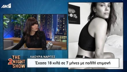 Καλεσμένη στο πλατό του «The 2Night Show» βρέθηκε το βράδυ της Τρίτης η Λάουρα Νάργες. Η ίδια μίλησε, μεταξύ άλλων, στον Γρηγόρη Αρναούτογλου, για την μεγάλη αλλαγή στην εξωτερική της εμφάνιση και περιέγραψε τον τρόπο που έχασε 18 κιλά μέσα σε 7 μήνες.