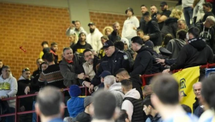 Στο σημείο εκείνο υπήρξε συμπλοκή των οπαδών των δύο ομάδων και μάλιστα υπήρξε και ρίψη αντικειμένων.