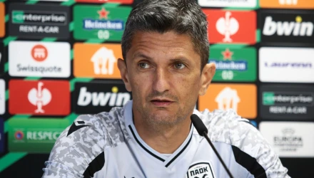 Για το αν ο ΠΑΟΚ είναι φαβορί: «Όλοι οι αντίπαλοί μας μας έχρισαν φαβορί. Είναι μία στρατηγική. Εμείς πάμε να παίξουμε έναν τελικό. Σ' έναν ευρωπαϊκό όμιλο δεν υπάρχουν περιθώρια για απώλειες και πρέπει να πάρουμε το τρίποντο με κάθε κόστος».