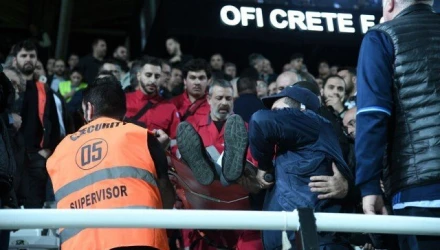 Λίγο πριν την έναρξη του αγώνα έγινε το περιστατικό στη θύρα 9 του γηπέδου, όπου ήταν παρόντες ο πρόεδρος του Ιατρικού Συλλόγου Ηρακλείου, Χάρης Βαβουρανάκης και άλλοι γιατροί, οι οποίοι με τους "Εθελοντές Σαμαρείτες" τον μετέφεραν στο ιατρείο του γηπέδου. Αμεσα έφτασε το αυτοκίνητο του ΕΚΑΒ και ακολούθως μεταφέρθηκε στο νοσοκομείο.