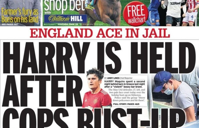 Η σύλληψη του Χάρι Μαγκουάιρ στη Μύκονο κάνει το γύρο του διαδικτύου και απασχολεί τον Τύπο και τα σχόλια δεν είναι και τόσο εγκωμιαστικά για τον ποδοσφαιριστή.