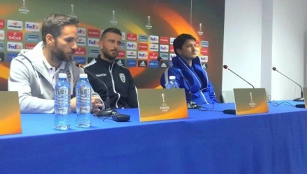 Ο Στέλιος Μαλεζάς εκπροσώπησε τους συμπαίκτες του στη συνέντευξη Τύπου και αρχικά απάντησε στο αν σκέφτονται και τον Ολυμπιακό: "Εμείς κοιταμε μόνο το ματς της Πέμπτης και αυτό γιατί θέλουμε να κάνουμε καλή πορεία από την αρχή της σεζόν και στις τρεις διοργανώσεις. Επομένως το μυαλό μας ειναι στην Καραμπάχ γνωρίζοντας πόσο σημαντικό είναι αυτό το ματς για τη συνέχεια της διοργάνωσης".