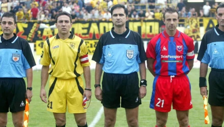 Βέβαια, οι δύο τους έχουν βρεθεί αντίπαλοι και μέσα στο γήπεδο. Μάλιστα, η φωτογραφία αποτελεί «μάρτυρα» από το παρελθόν, όταν ήταν σε αντίστροφο ρόλο. Τότε, ο Νίκος Παπαδόπουλος ήταν αρχηγός του Άρη και ο Άκης Μάντζιος, σε άλλη ομάδα και δη ως αρχηγός του Πανιωνίου. Ήταν παιχνίδι Πρωταθλήματος στο «Κλεάνθης Βικελίδης», όταν οι κίτρινοι φιλοξένησαν τους κυανέρυθρους, στις 31 Αυγούστου του 2002.