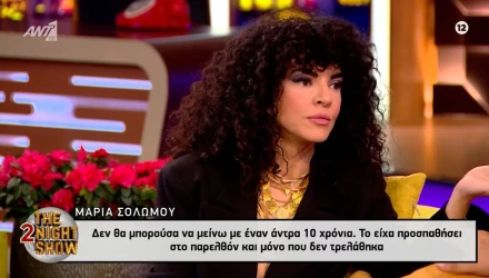 Καλεσμένη στην εκπομπή «The 2Night Show» του ΑΝΤ1 με τον Γρηγόρη Αρναούτογλου, βρέθηκε το βράδυ της Τρίτης (24/2) η Μαρία Σολωμού. Μιλώντας στον γνωστό παρουσιαστή για την τηλεόραση, είπε: «Είμαι καλό “τυράκι” για τις εκπομπές, επειδή μιλάω πολύ και δίνω υλικό. Ξέρω ότι είμαι τροφή και γίνεται αναπαραγωγή».