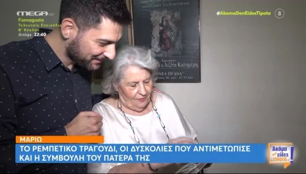 Η Μαριώ παραχώρησε συνέντευξη στην εκπομπή "Ακόμα δεν είδες τίποτα" και στον Γιάννη Μαυρίδη και αναφέρθηκε στο ξεκίνημά της στο ρεμπέτικο τραγούδι, στις δυσκολίες που αντιμετώπισε και στη συμβουλή του πατέρα της.